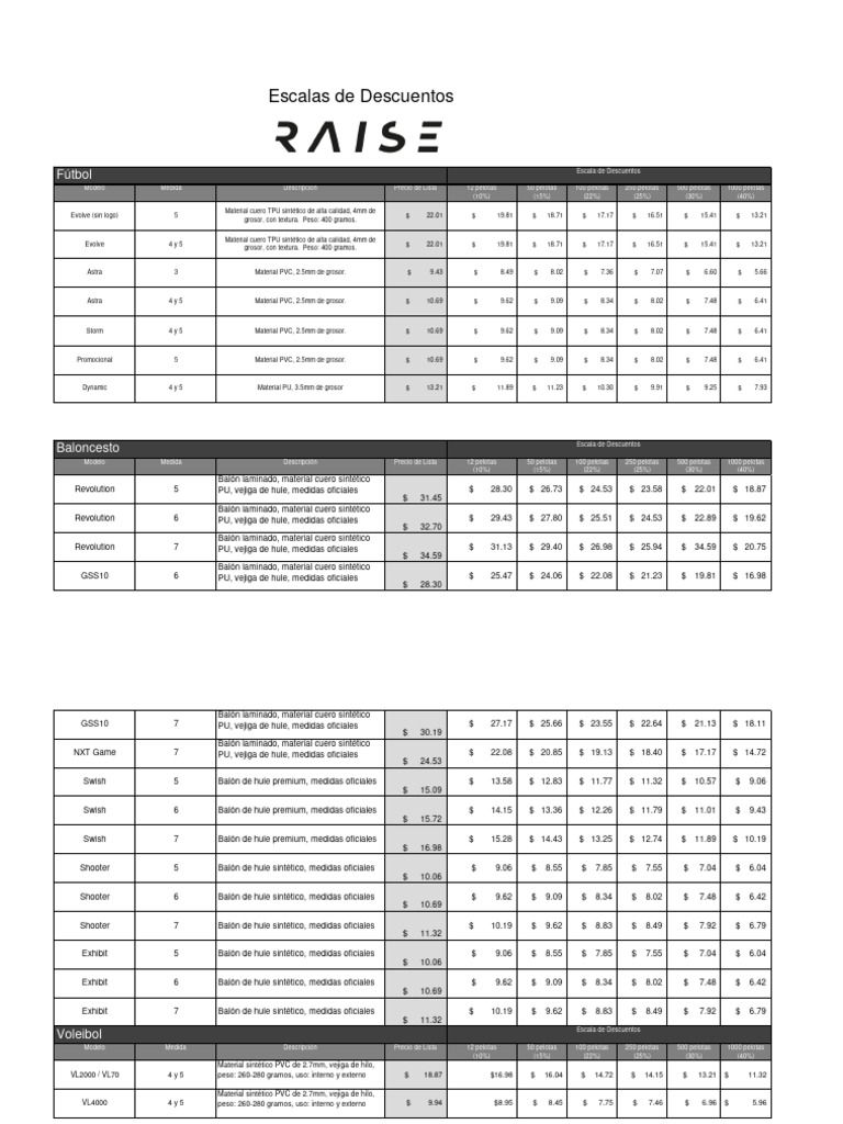 Exhibit 6 Balón de hule sintético, medidas oficiales $ 9.62 $ 9.09 $ 8.34 $ 8.02 $ 7.48 $ 6.42