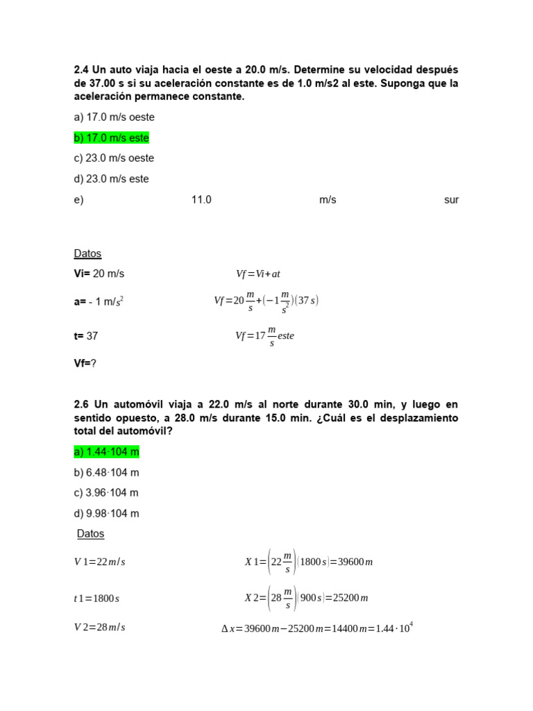 2.6 Un automóvil viaja a 22.0 m/s al norte durante 30.0 min, y luego en
