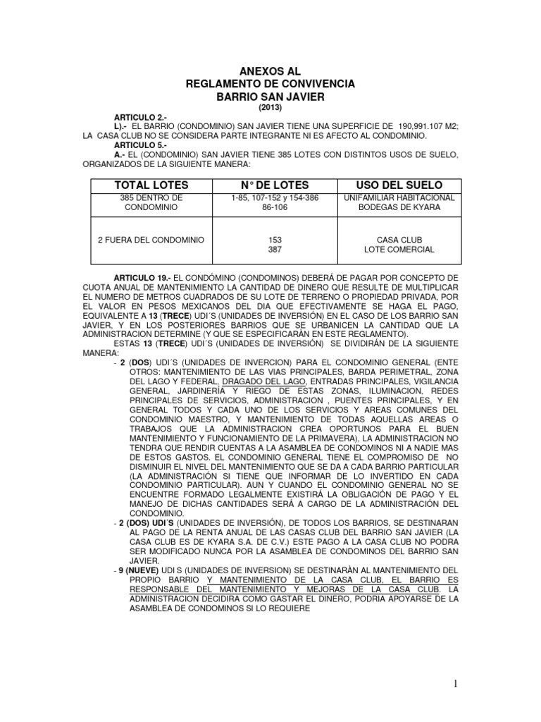 SER MODIFICADO NUNCA POR LA ASAMBLEA DE CONDOMINOS DEL BARRIO SAN