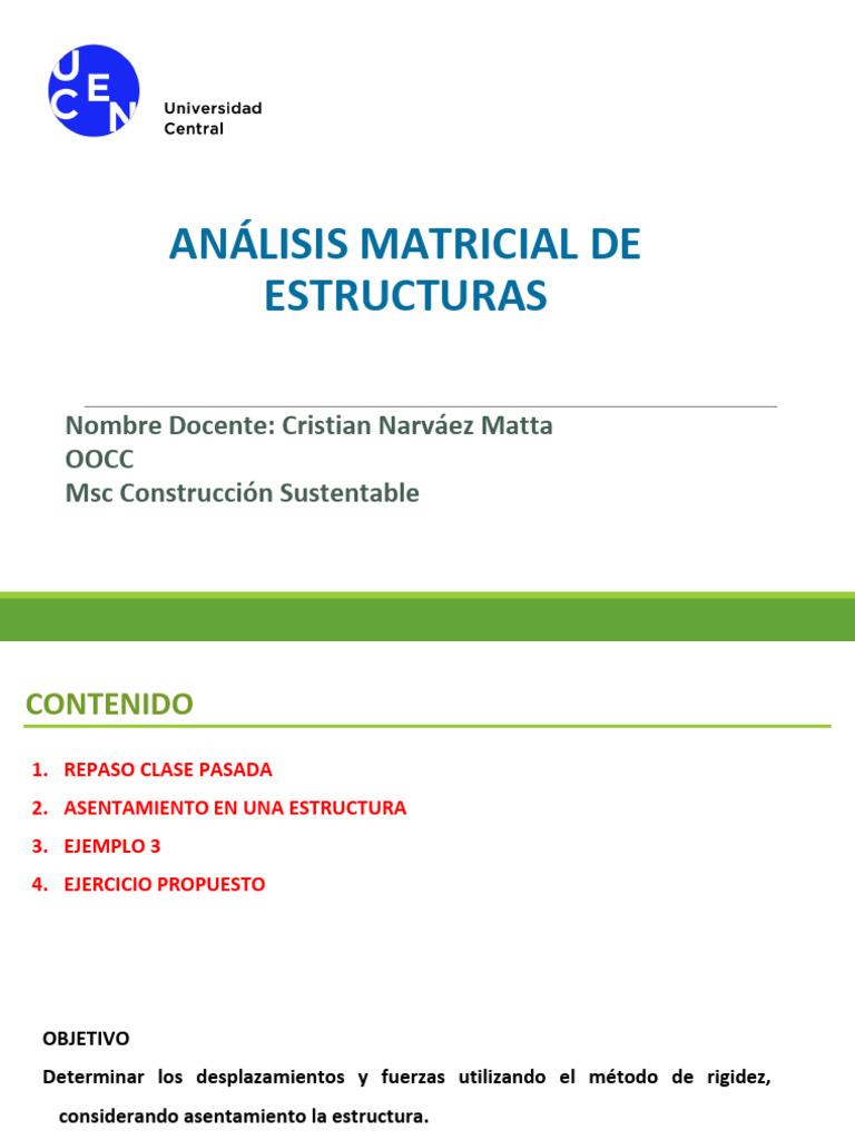 • El asentamiento en una estructura se debe considerar como un desplazamiento