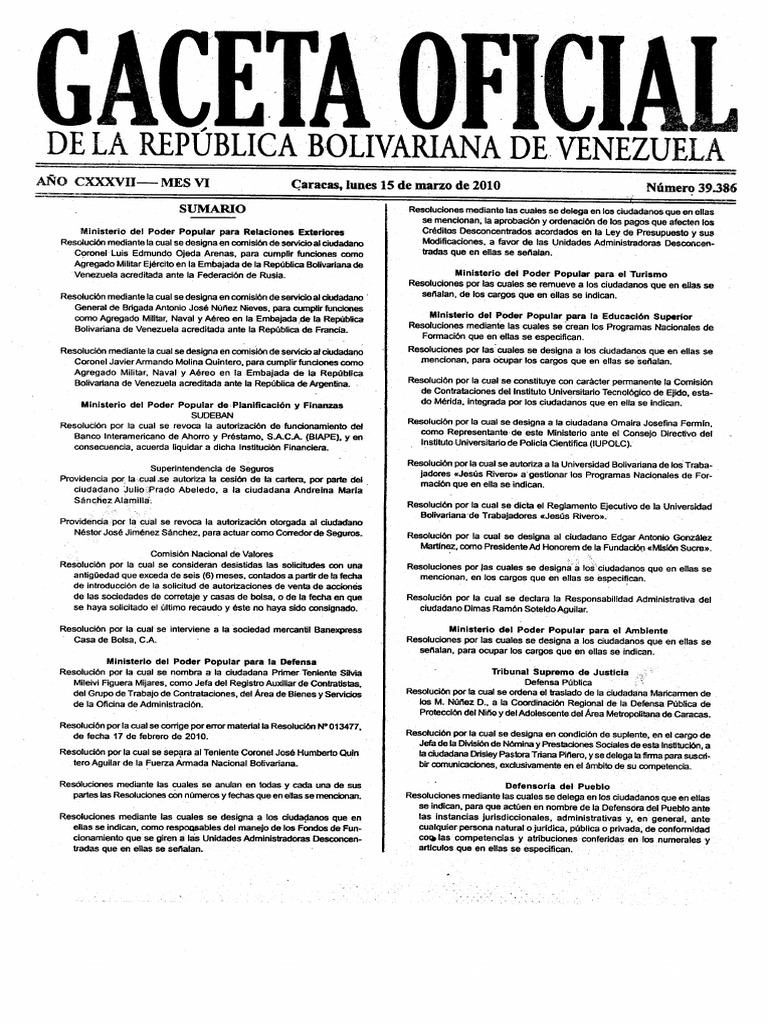 Caracas, lunes 15 de marzo de 2010 Namero 39.386