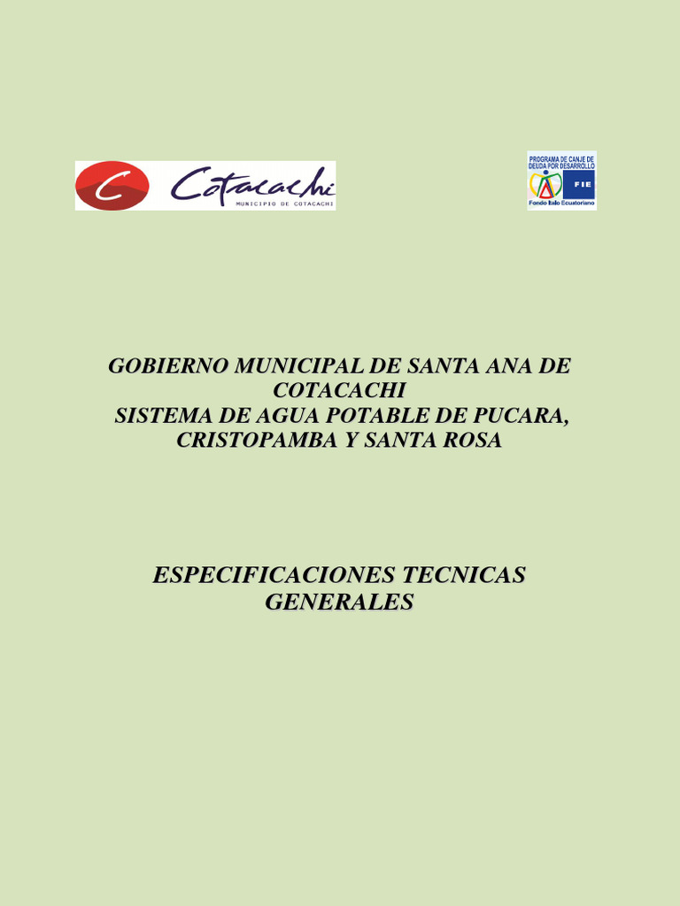 Especificaciones para Sistemas de Agua Potable