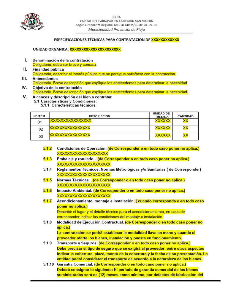 ESPECIFICACIONES TÉCNICAS PARA CONTRATACION DE XXXXXXXXXXXX