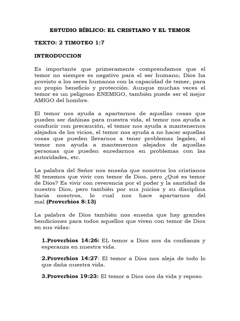 ESTUDIO BÍBLICO: EL CRISTIANO Y EL TEMOR