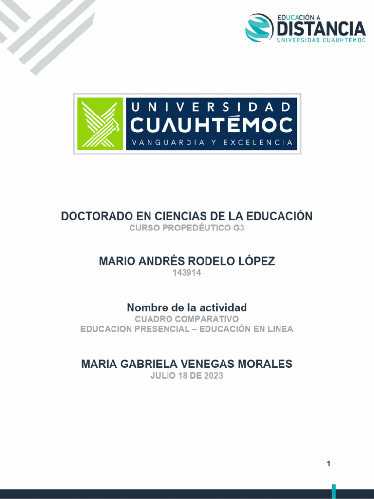 Cuadro Comparativo Educación Presencial vs Educación en Línea.