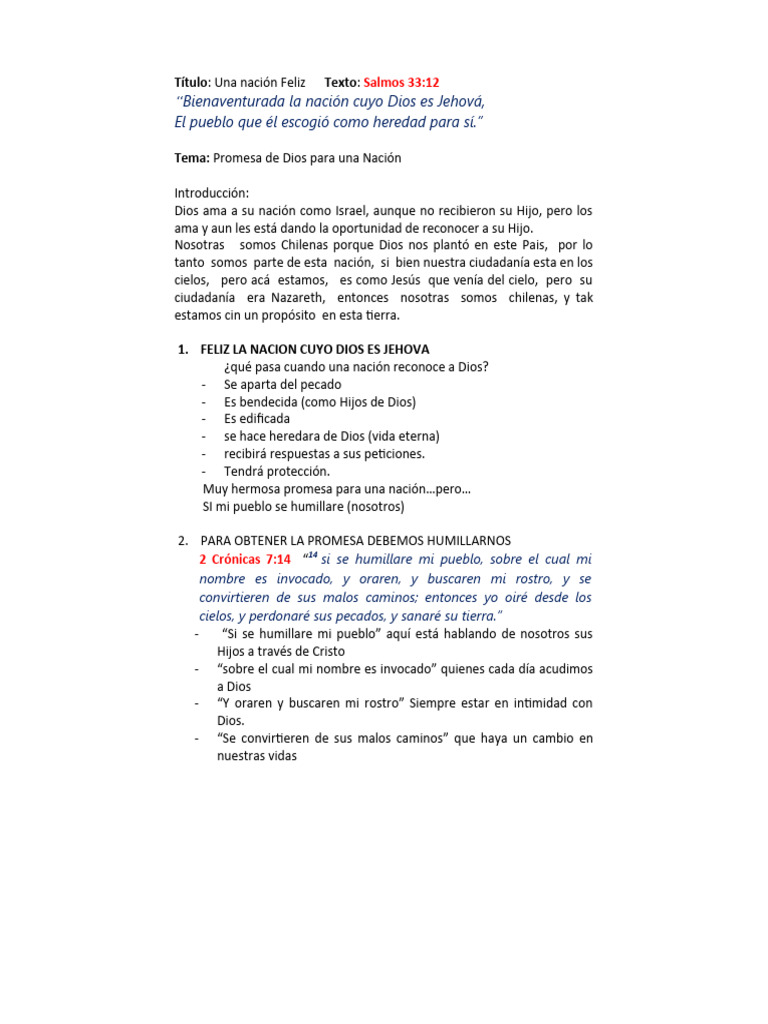 Título: Una nación Feliz Texto: Salmos 33:12