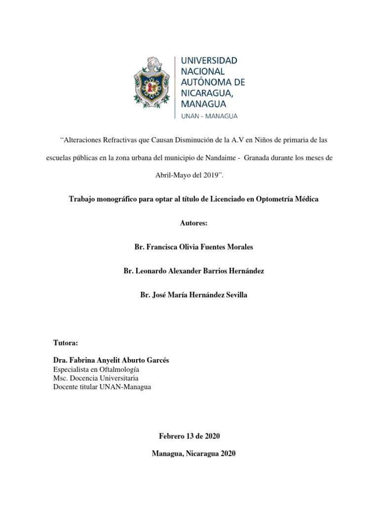 ametropías en el municipio de Nandaime en una población vulnerable como son los niños, donde