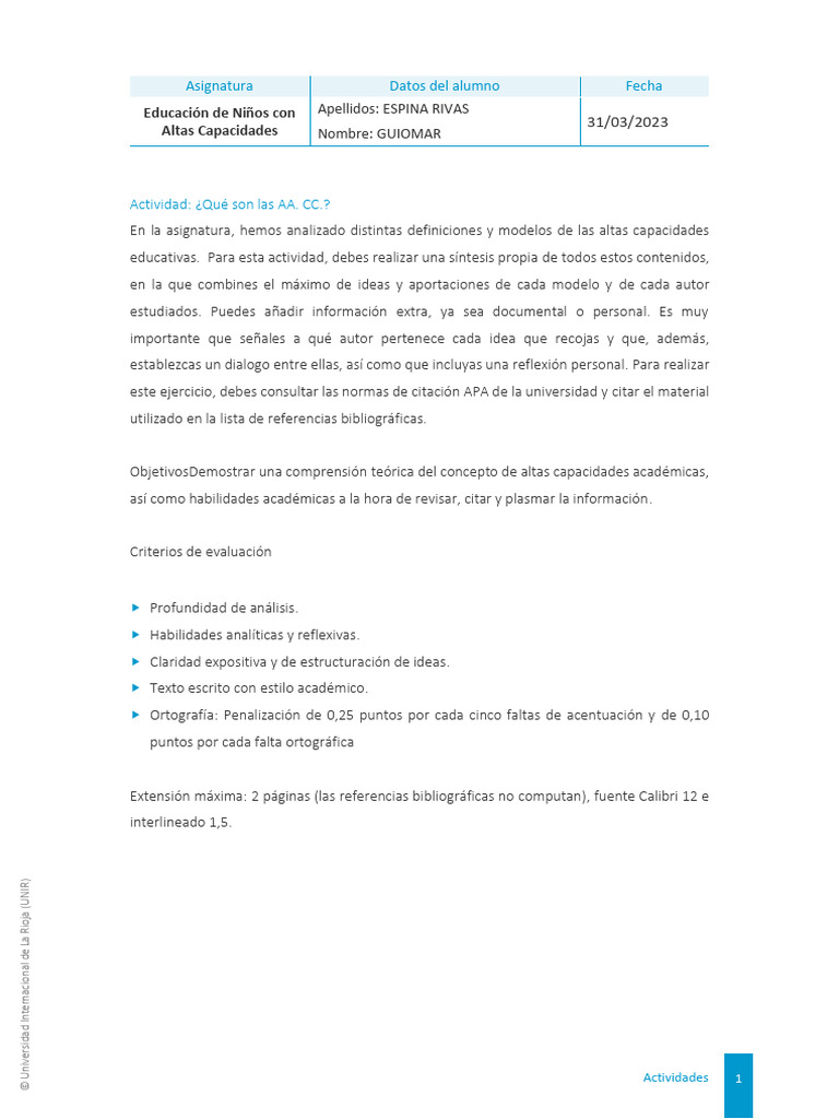 ➢ UNIR (2023). Tema 1: Concepciones y modelos sobre altas capacidades y
