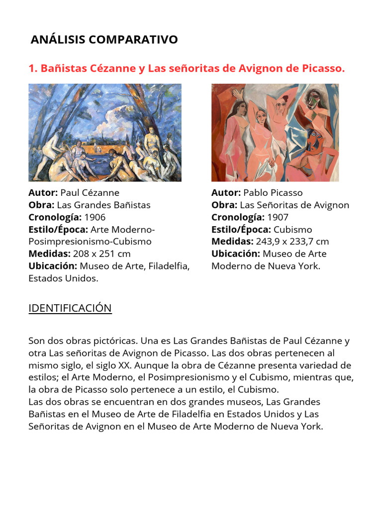1. Bañistas Cézanne y Las señoritas de Avignon de Picasso.