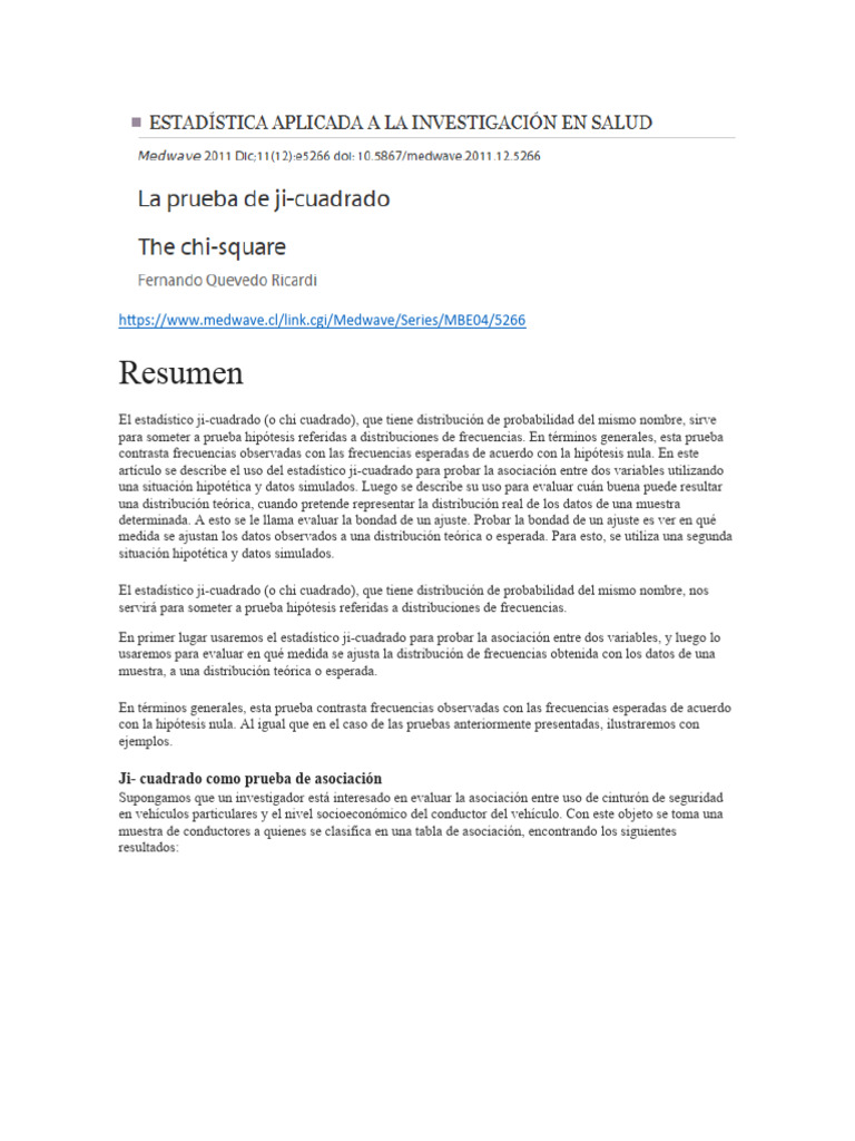 artículo se describe el uso del estadístico ji-cuadrado para probar la asociación entre dos variables utilizando