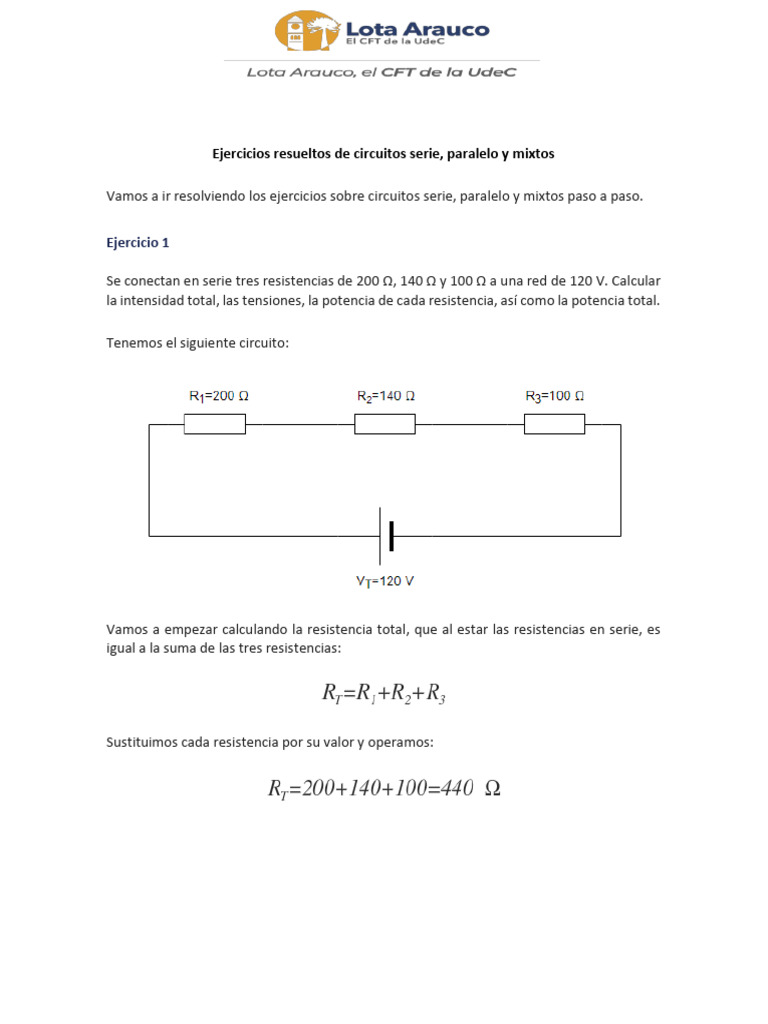 Ejercicios resueltos de circuitos serie, paralelo y mixtos