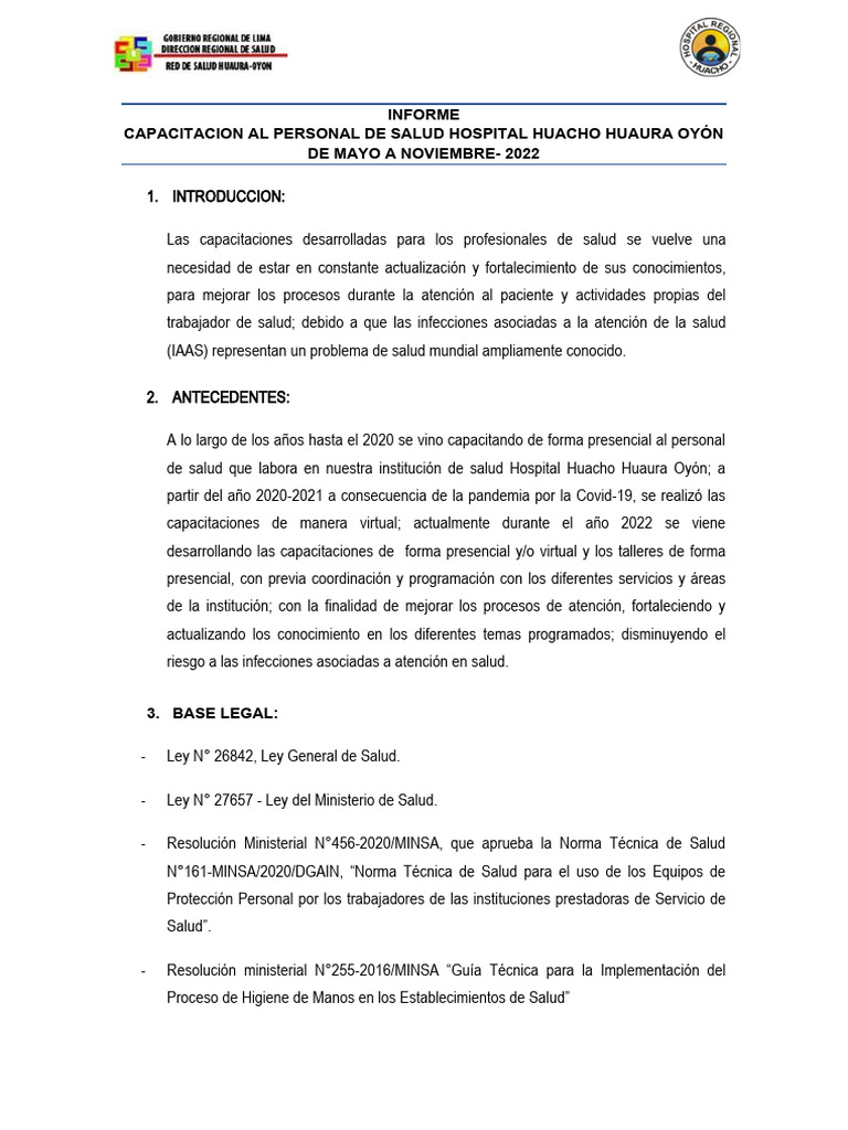 CAPACITACION AL PERSONAL DE SALUD HOSPITAL HUACHO HUAURA OYÓN