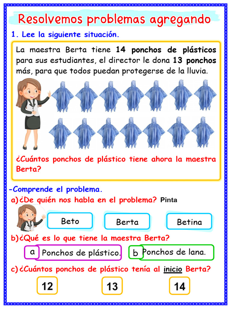 ¿Cuántos ponchos de plástico tiene ahora la maestra Berta?