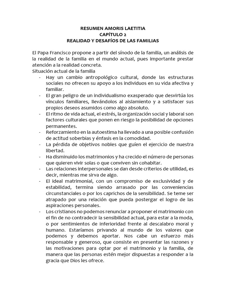 El Papa Francisco propone a partir del sínodo de la familia, un análisis de