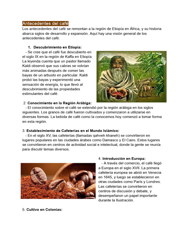 Los antecedentes del café se remontan a la región de Etiopía en África, y su historia