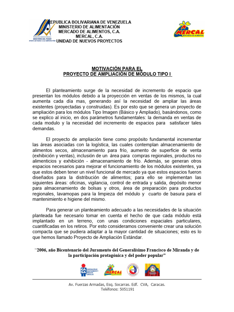 El Proyecto de Ampliación Estándar para los Módulos de Mercal Tipo I