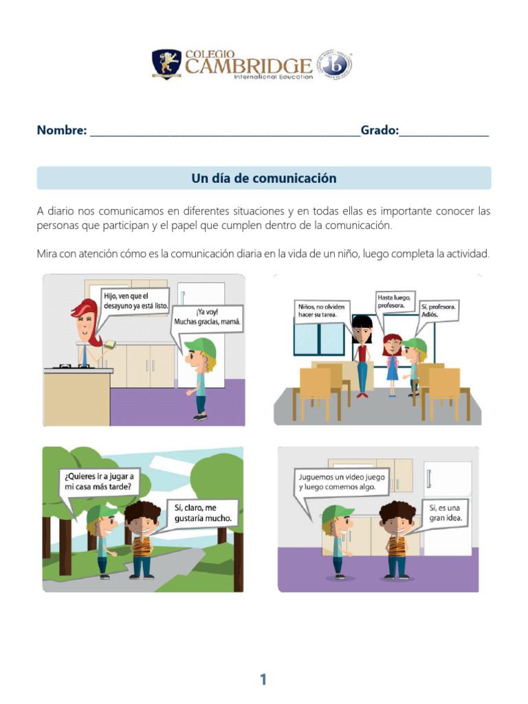 Mira con atención cómo es la comunicación diaria en la vida de un niño, luego completa la actividad.
