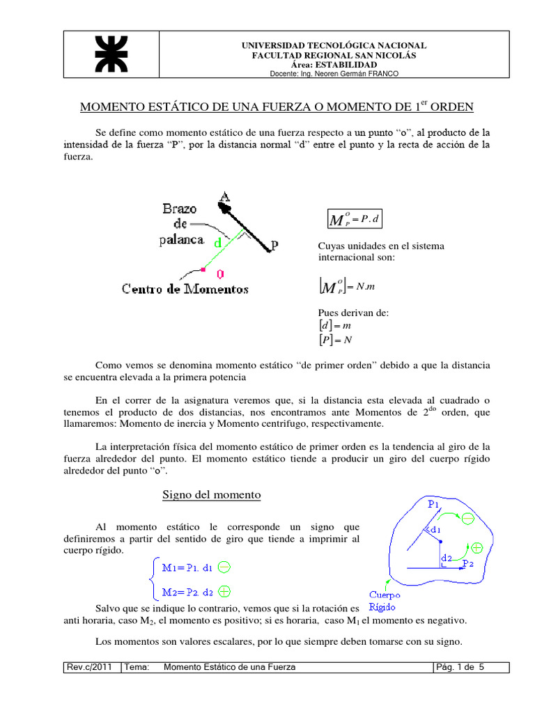 Rev.c/2011 Tema: Momento Estático de una Fuerza Pág. 1 de 5