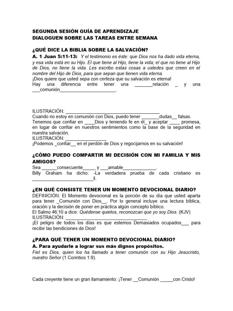 oración y la decisión de poner en práctica algún concepto bíblico.