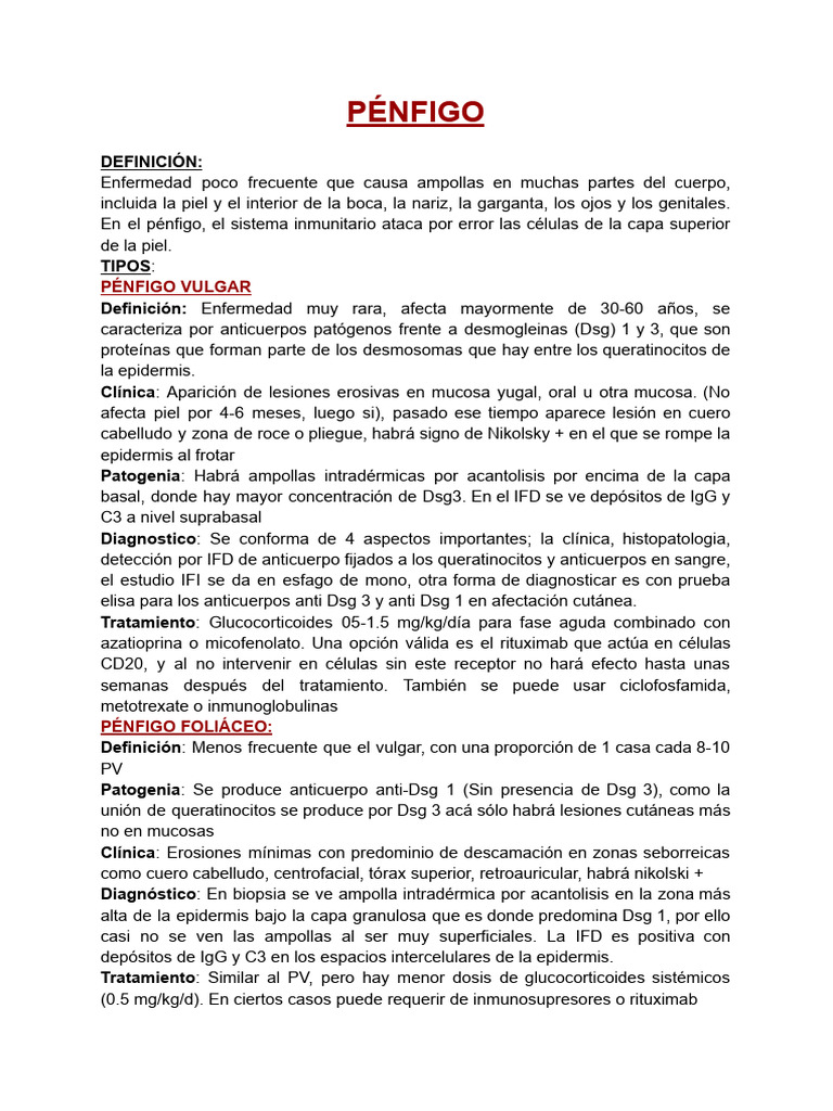 Tratamiento: Similar al PV, pero hay menor dosis de glucocorticoides sistémicos