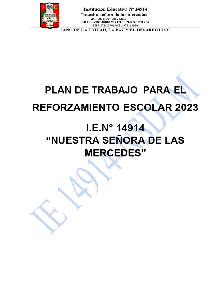 PLAN DE REFUERZO ESCOLAR 2023