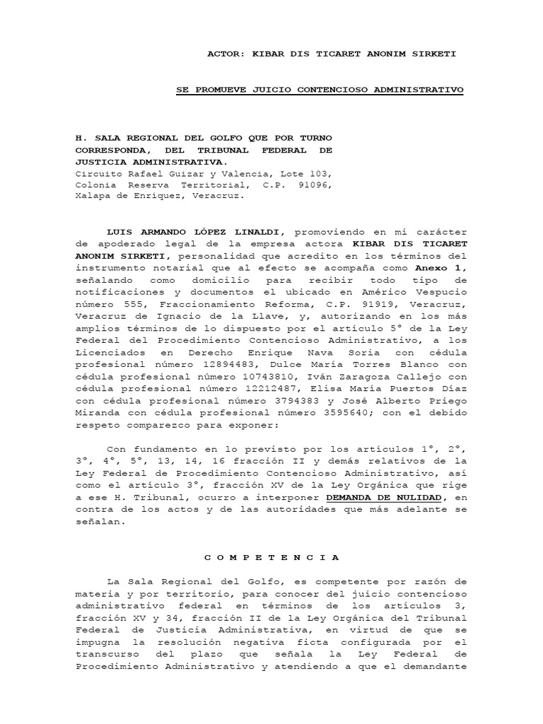 Federal del Procedimiento Contencioso Administrativo, a los