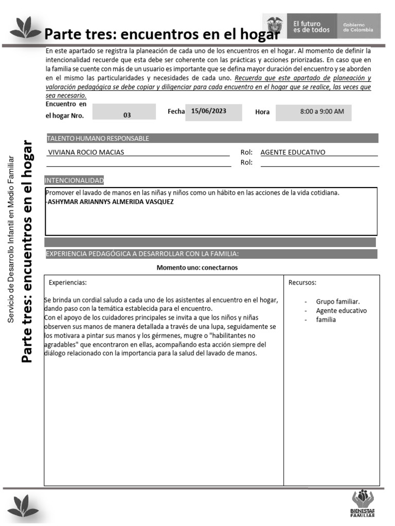 valoración pedagógica se debe copiar y diligenciar para cada encuentro en el hogar que se realice, las veces que