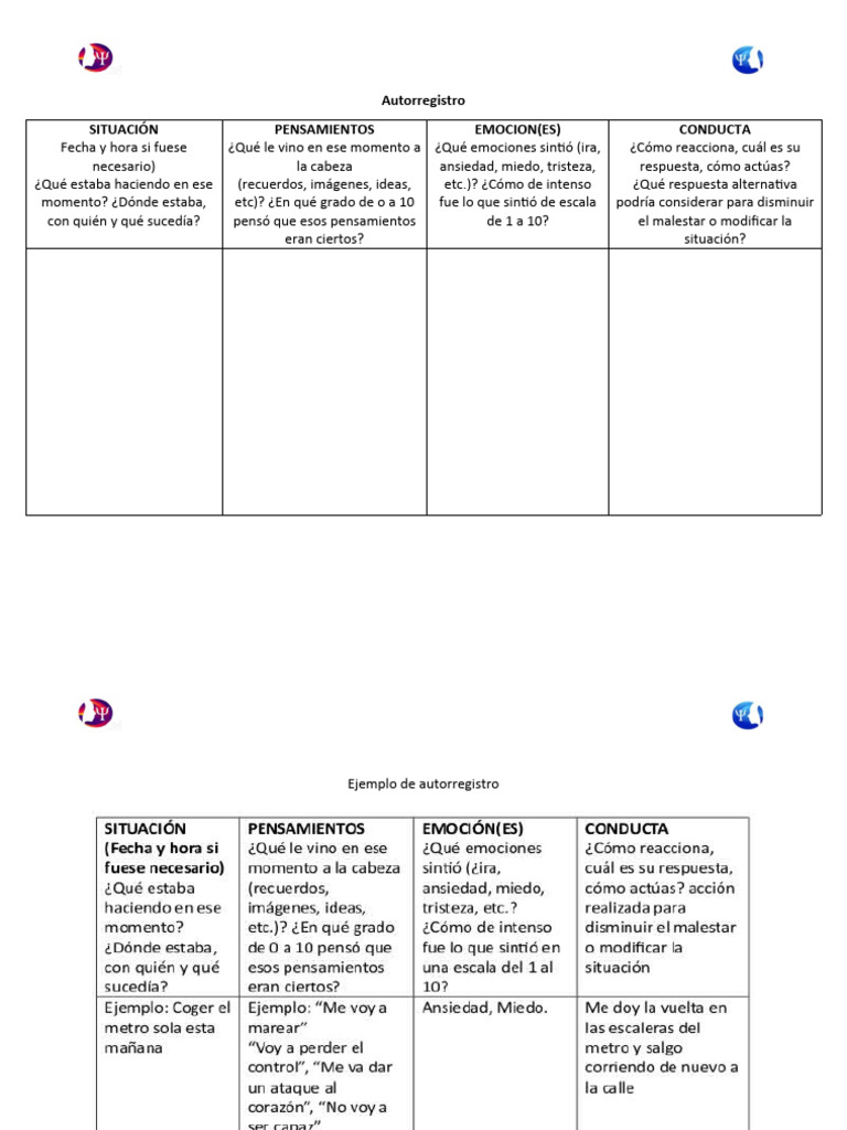 paciente una hoja donde pueda registrar todas las conductas y pensamientos en su semana para poder trabajarla en