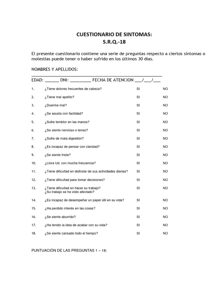Las primeras 18 preguntas se refieren a trastornos de leve o moderada intensidad