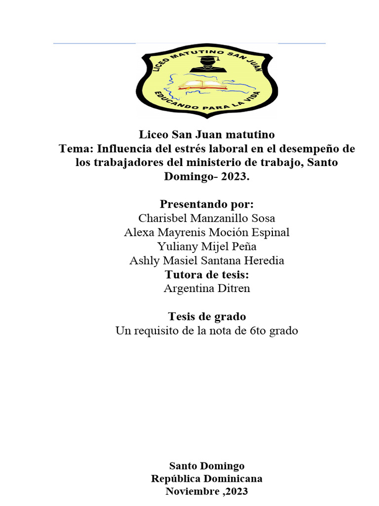 Tema: Influencia del estrés laboral en el desempeño de