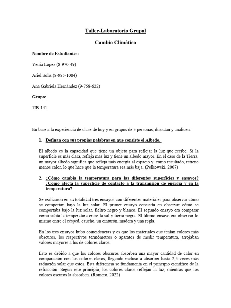 1. Definan con sus propias palabras en que consiste el Albedo.
