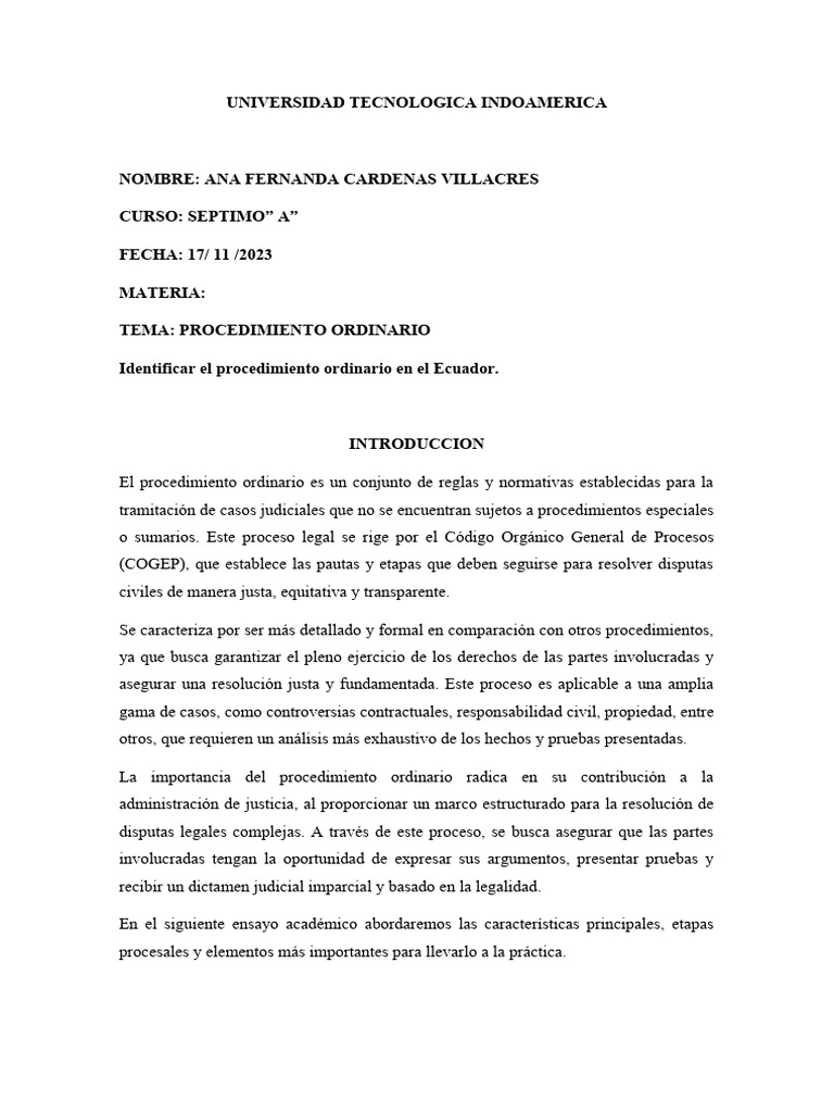 El procedimiento ordinario es un conjunto de reglas y normativas establecidas para la