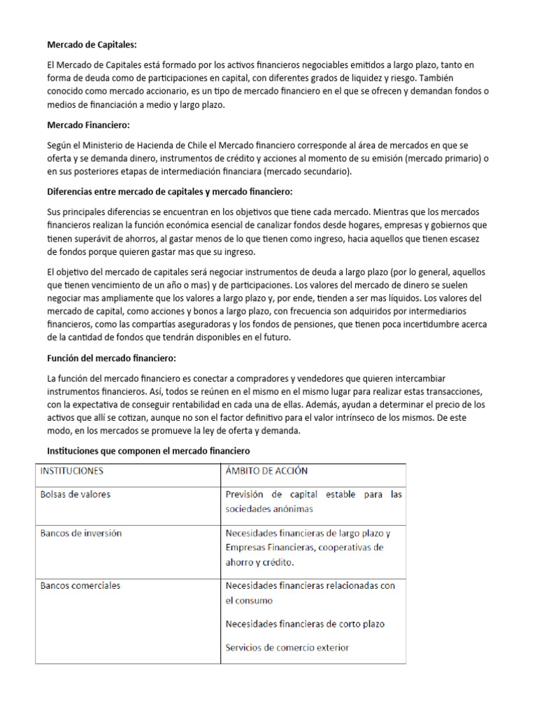 Según el Ministerio de Hacienda de Chile el Mercado financiero corresponde al área de mercados en que se