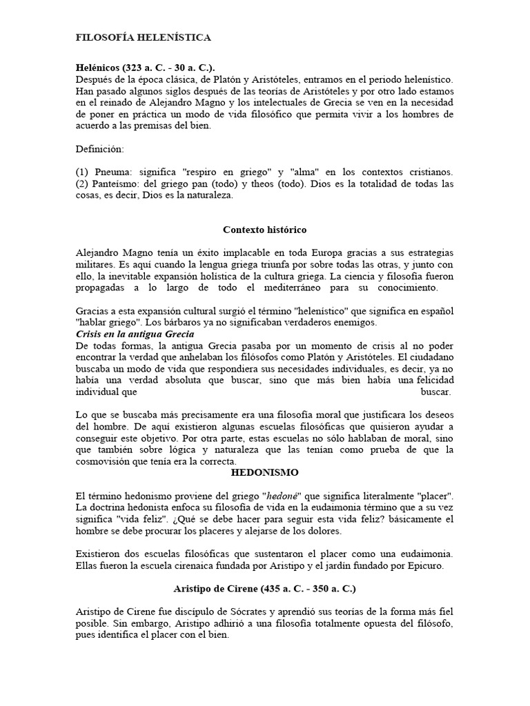 Después de la época clásica, de Platón y Aristóteles, entramos en el periodo helenístico.