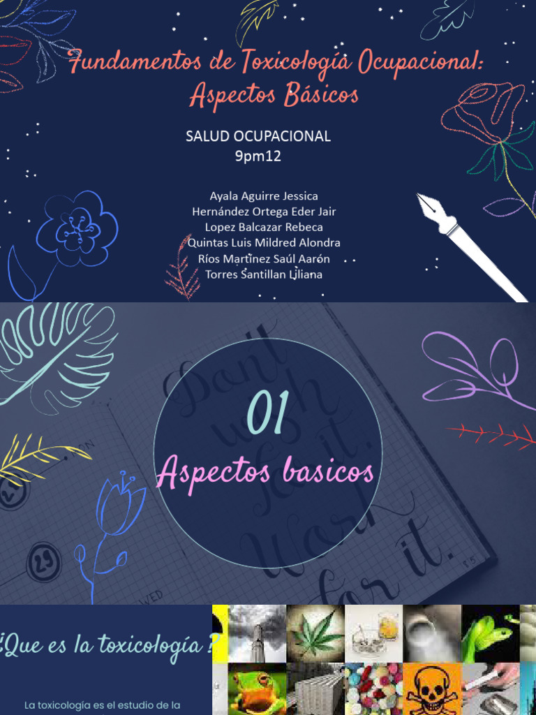 Toxicología ocupacional Analiza los efectos en la salud que tiene la exposición a las