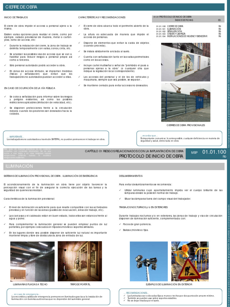 INICIO DE TRABAJOS CARACTERÍSTICAS Y RECOMENDACIONES 01.01 PROTOCOLO DE INICIO DE OBRA
