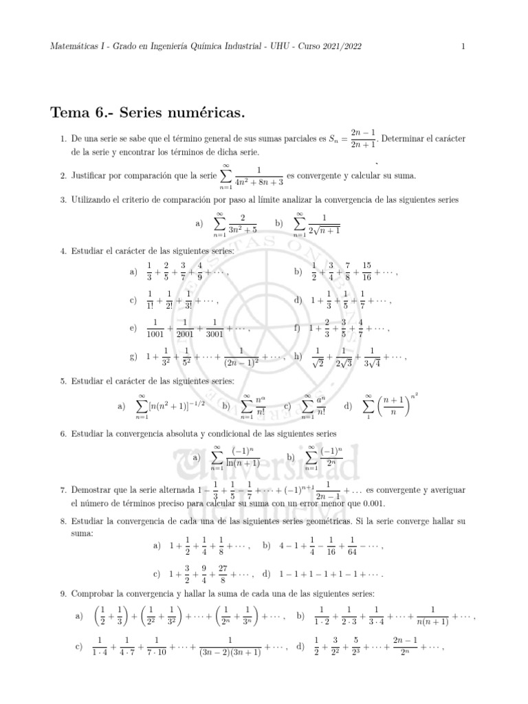 6. Estudiar la convergencia absoluta y condicional de las siguientes series