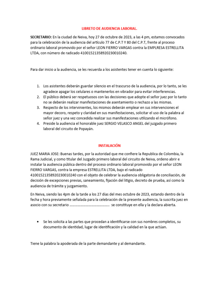 LIBRETO DE AUDIENCIA LABORAL.