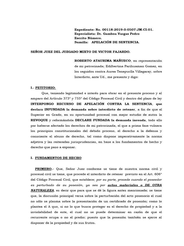 INTERPONGO RECURSO DE APELACIÓN CONTRA LA SENTENCIA, que