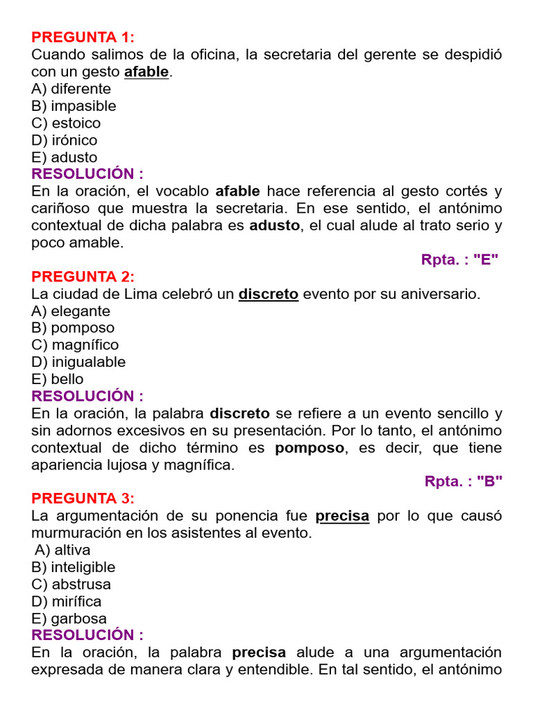 expresada de manera clara y entendible. En tal sentido, el antónimo
