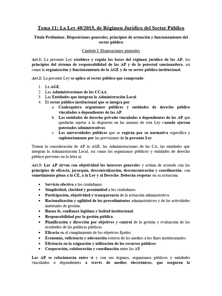 Tema 11: La Ley 40/2015, de Régimen Jurídico del Sector Público