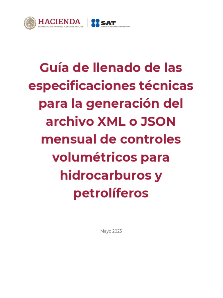Guía de llenado de las especificaciones técnicas para la generación del archivo XML o JSON mensual
