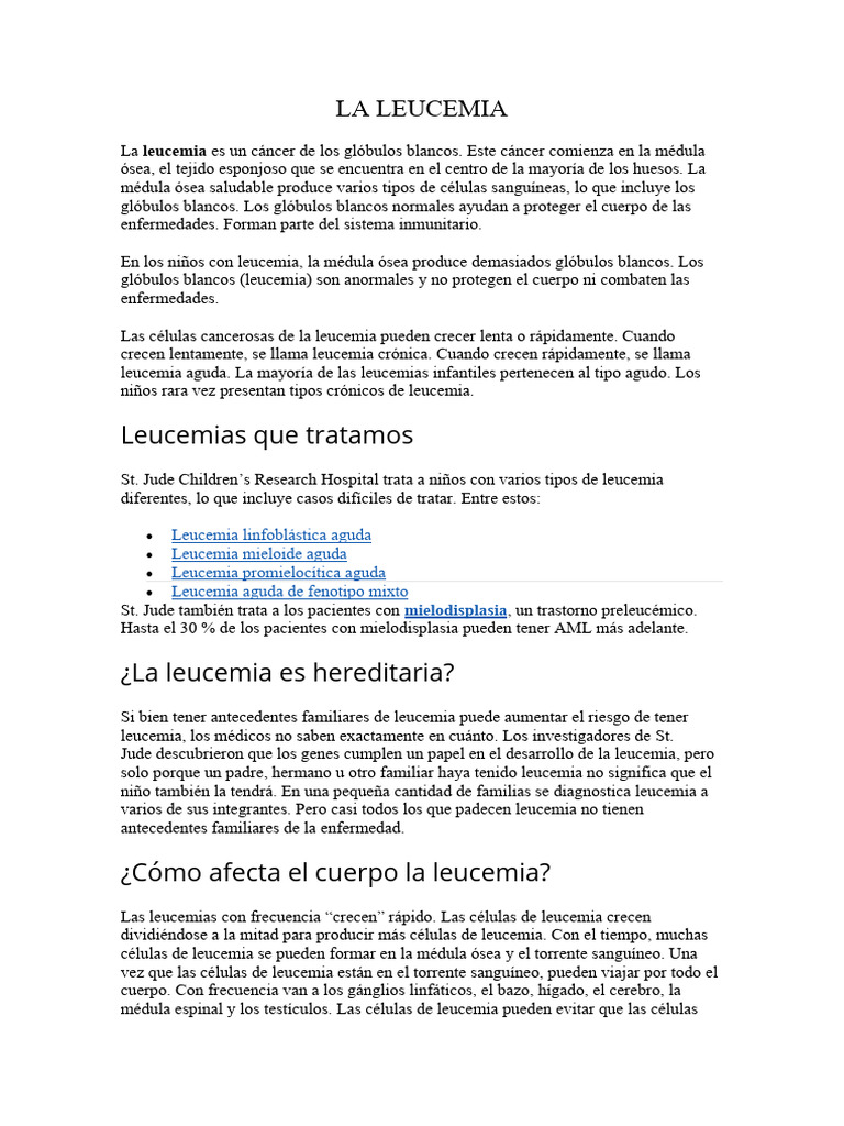 leucemia, los médicos no saben exactamente en cuánto. Los investigadores de St.