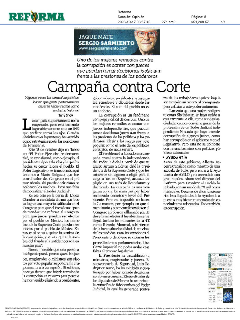 Artísticas. EFINFO sólo realiza la presente publicación por así haberlo solicitado el cliente de monitoreo de EFINFO, únicamente con el propósito de revisar la fuente de la nota y verificar los derechos de autor correspondientes a la misma; por lo que el uso de la nota es exclusivamente personal