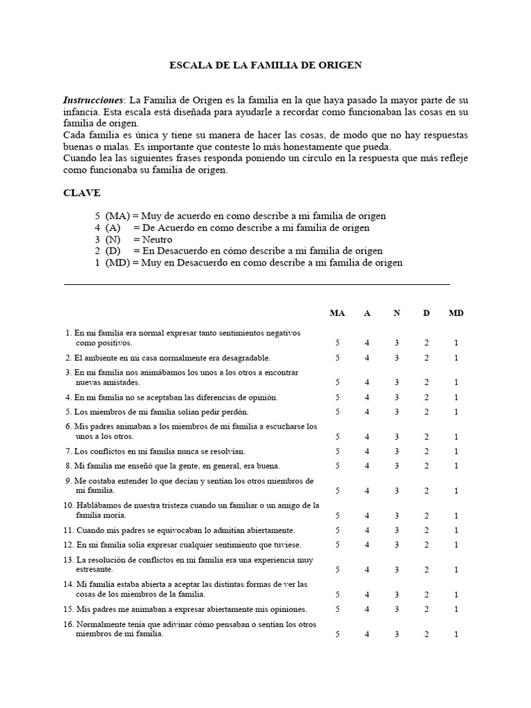 Instrucciones: La Familia de Origen es la familia en la que haya pasado la mayor parte de su