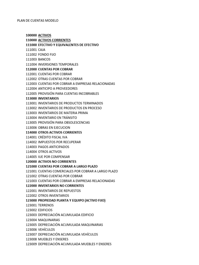 PLAN DE CUENTAS MODELO