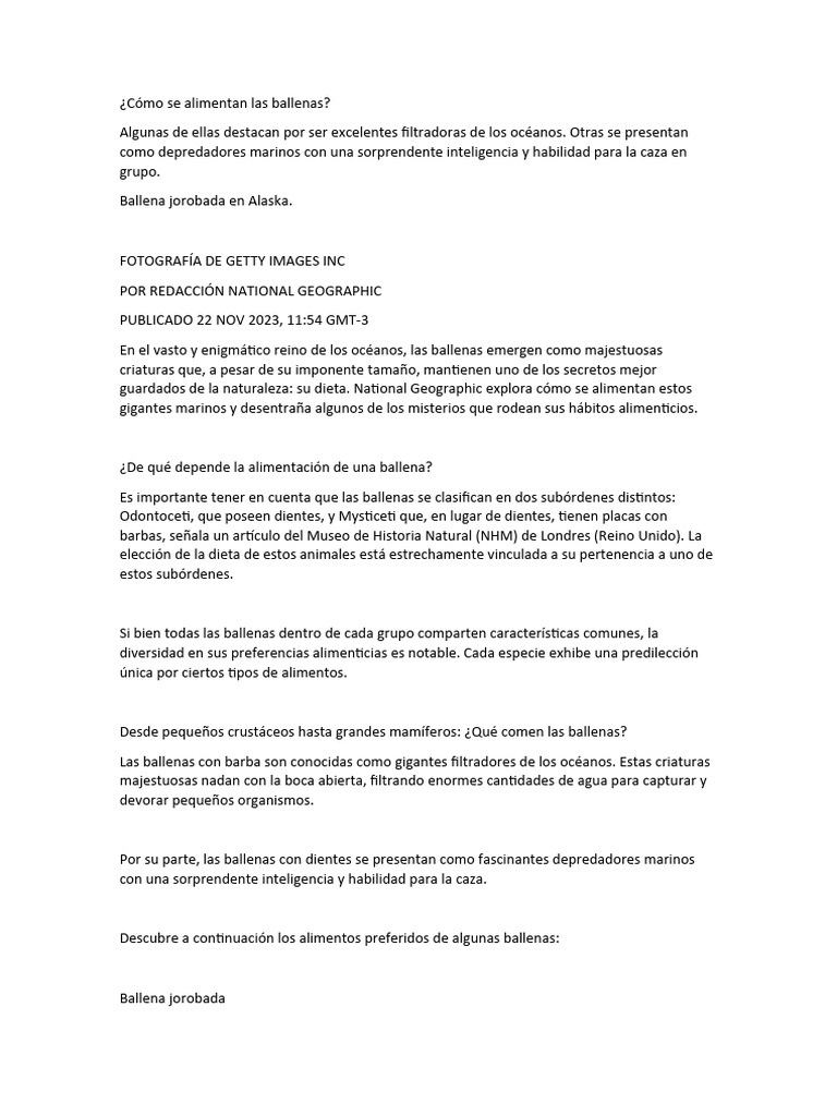 Descubre a continuación los alimentos preferidos de algunas ballenas:
