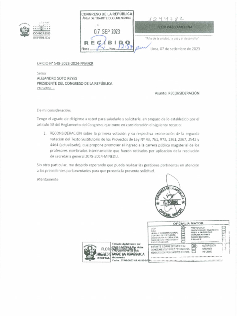 ASUNTO: Reconsideracion a la primera votacién