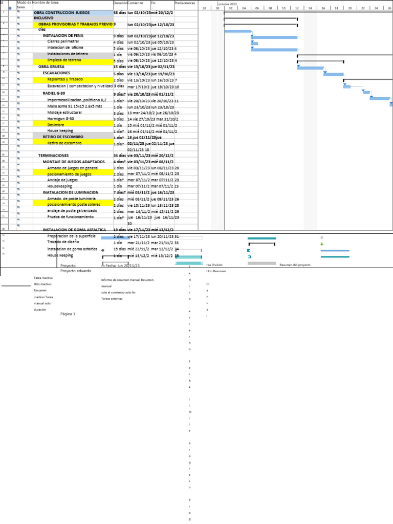 Id Modo de Nombre de tarea DuraciónComienzo Fin Predecesoras octubre 2023