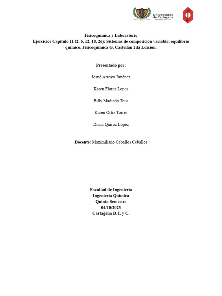Ejercicios Capítulo 11 (2, 6, 12, 18, 26): Sistemas de composición variable; equilibrio
